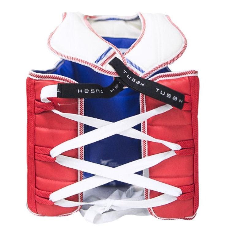 Conçu pour les entraînements de combat de Taekwondo les plus difficiles, le Tusah Protection de coffre homologuée WT offre une excellente protection sans entrave contre les coups à la poitrine et au haut du corps.